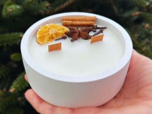 Nech se unést hřejivou vůní pomeranče, skořice, hřebíčku a badyánu, která zahřeje tělo i duši. Ručně vyráběná sójová svíčka v betonové nádobě přinese do tvého domova pohodu a kouzlo zimních večerů.